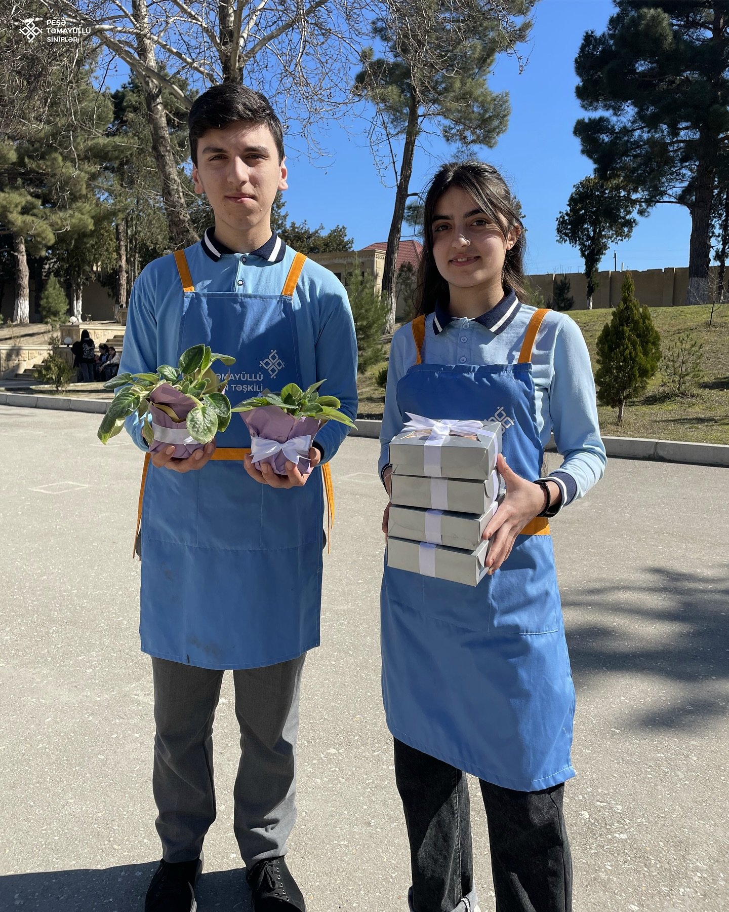 Peşə təmayüllü sinif şagirdləri əkdikləri gülləri və hazırladıqları şirniyyatları zəhmətkeş xanımlara hədiyyə edərək, onları 8 Mart Beynalxalq Qadınlar Günü münasibətilə təbrik etdilər.